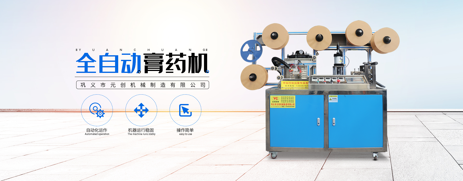 鞏義市元?jiǎng)?chuàng)機(jī)械制造有限公司是一家致力于中醫(yī)膏藥貼設(shè)備自動(dòng)化的設(shè)計(jì)、生產(chǎn)與銷售的企業(yè)。膏藥機(jī)廠家憑借在機(jī)械、電氣、工藝、材料等方面的技術(shù)團(tuán)隊(duì),已成為一家能提供非標(biāo)定制膏藥貼設(shè)備的制造商。